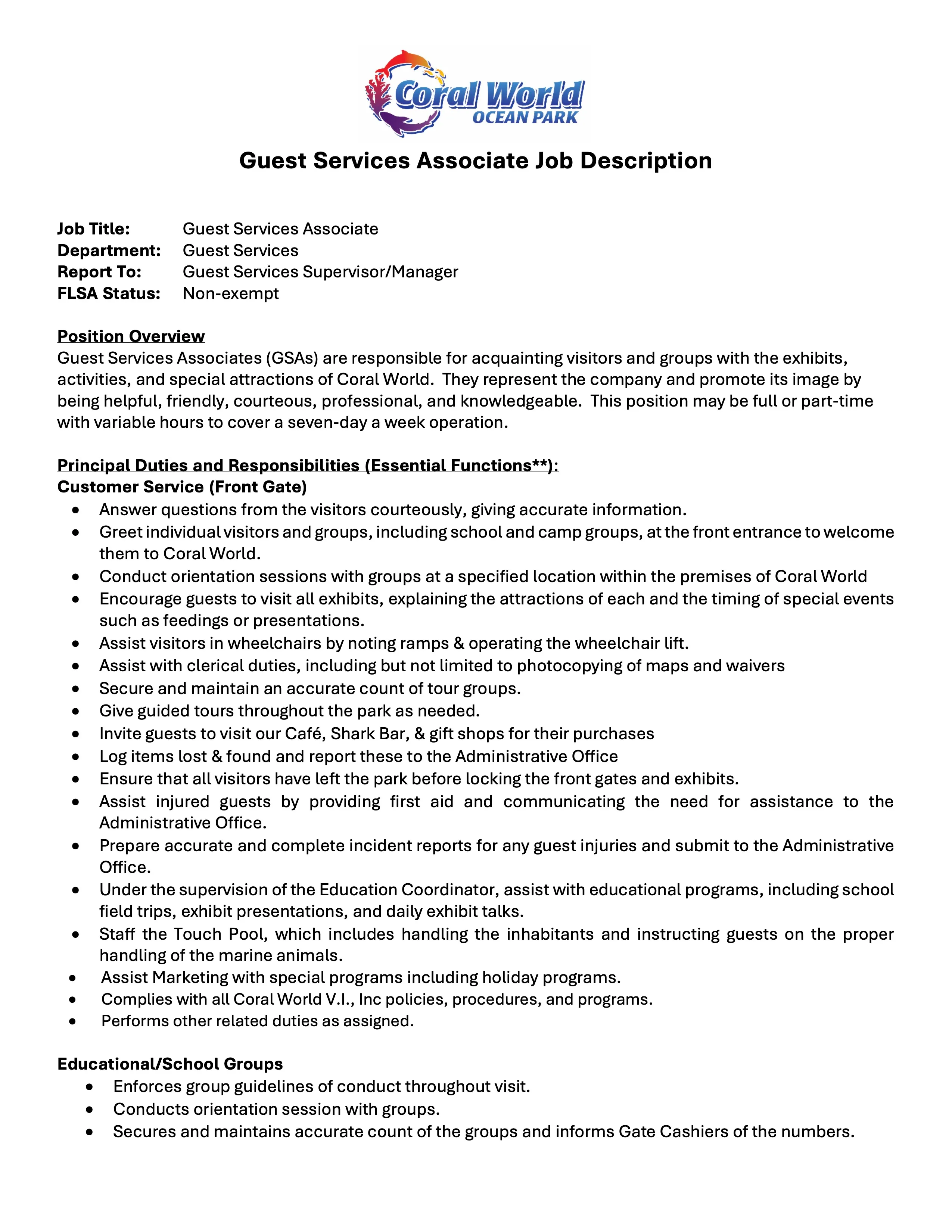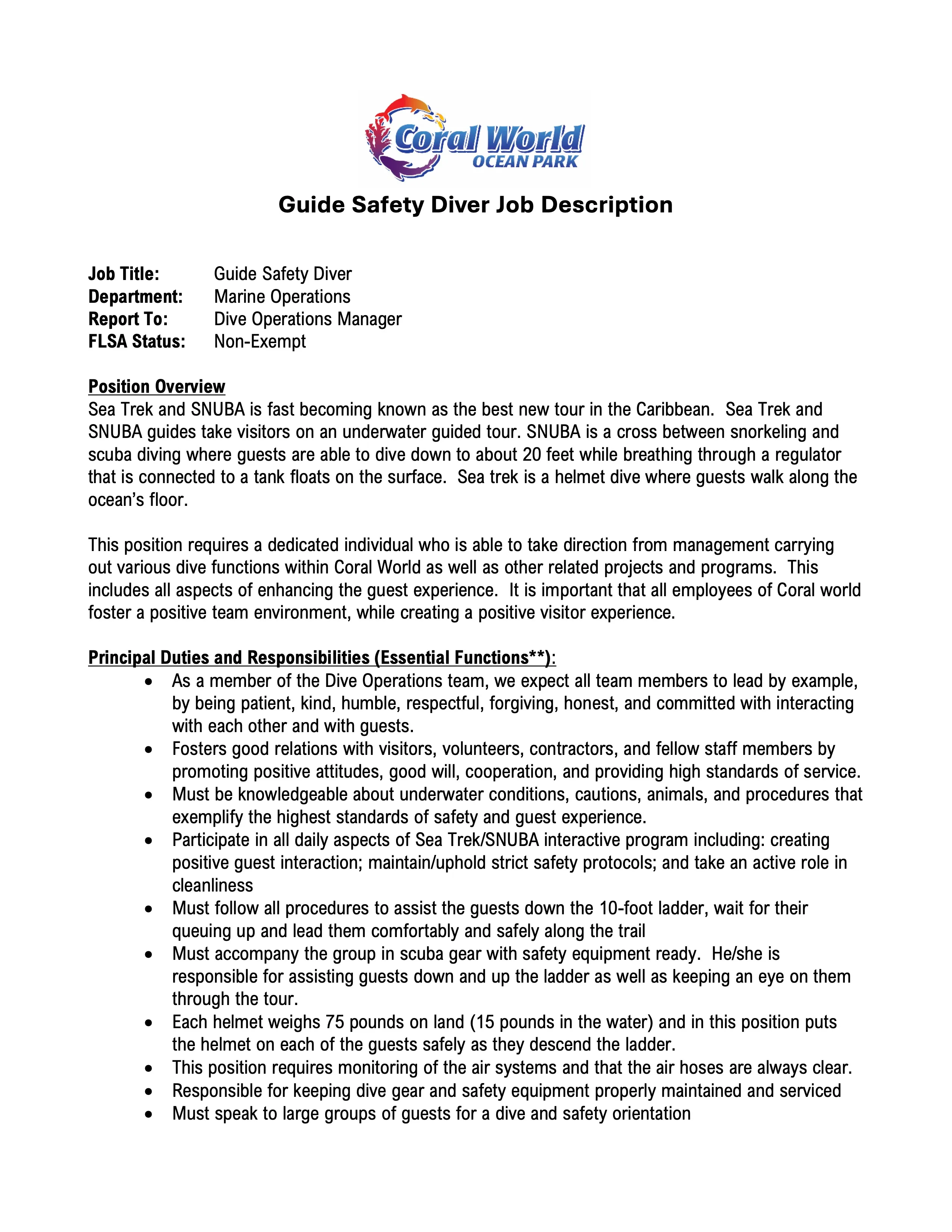 All employees of Coral World work to support the company mission and demonstrate our values each and every day. To learn more about our company mission and values click here.